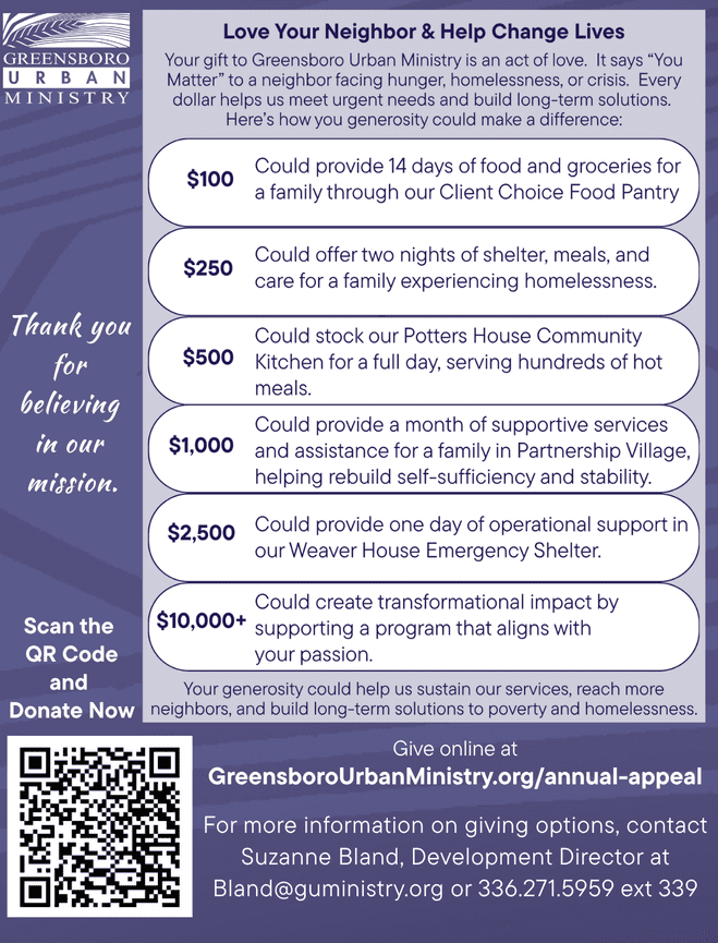 Greensboro Urban Ministry’s Corporate Sponsors provide important program support and awareness-raising for events and special campaigns. We would like to thank the corporations displayed below for their generous support during this fiscal year!
